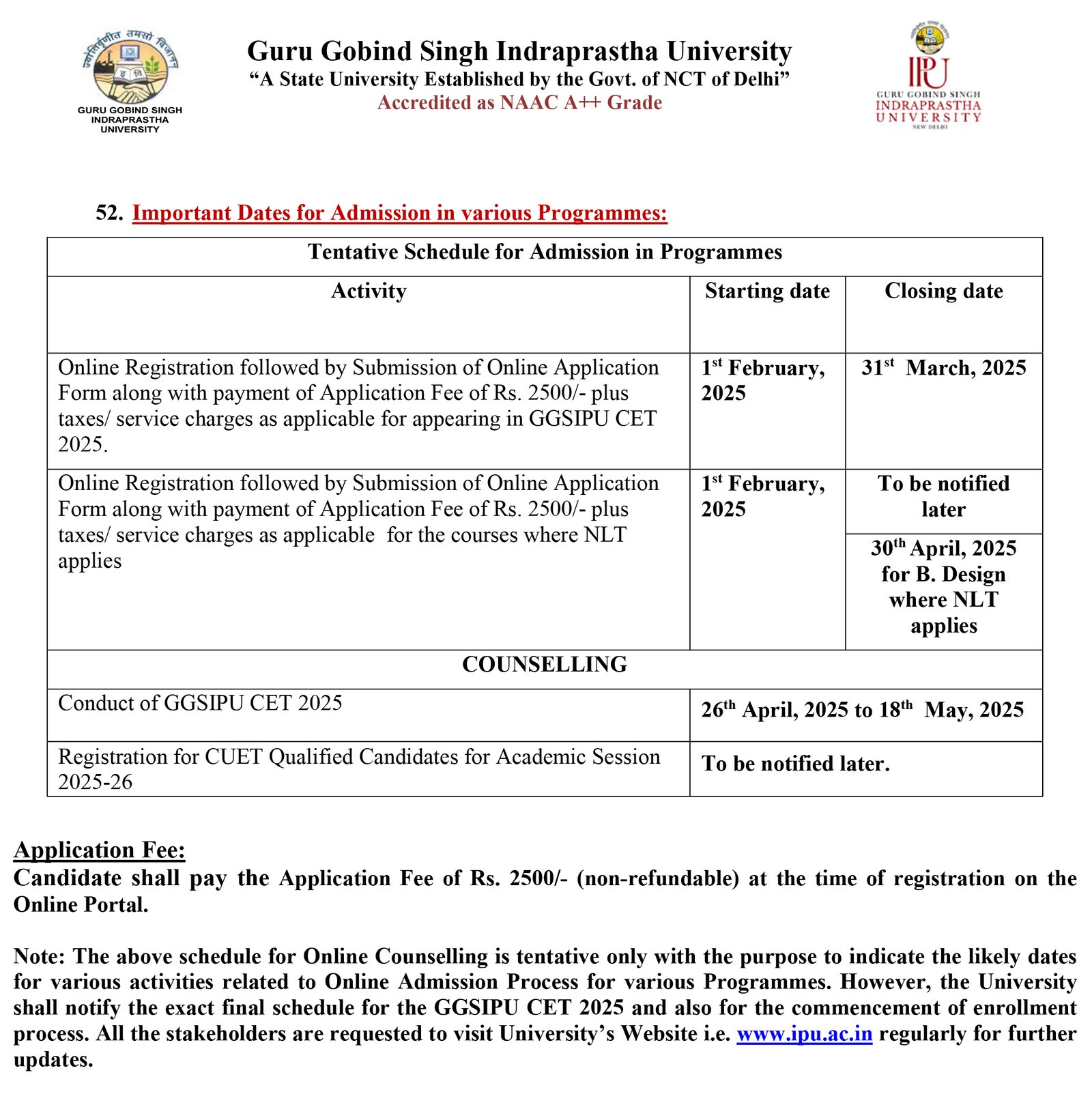 - Visit the official website of GGSIP University